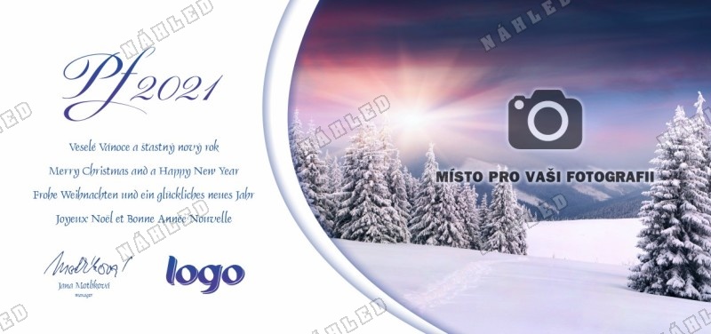 Na tuto novoročenku Vám umístíme váš vlastní motiv (fotografii nebo ilustraci), který přiložíte k objednávce stejným způsobem jako logo. Dodaný obrázek musí mít dostatečné tiskové rozlišení (300dpi). Pokud si nebudete vědět rady, kontaktujte nás.