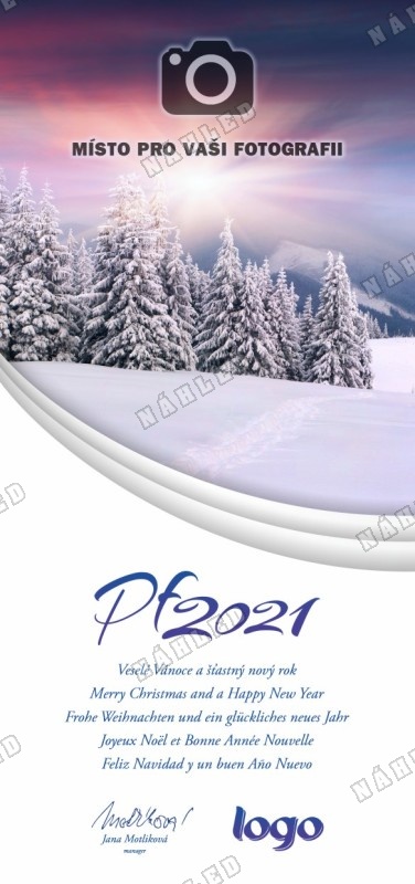 Na tuto novoročenku Vám umístíme váš vlastní motiv (fotografii nebo ilustraci), který přiložíte k objednávce stejným způsobem jako logo. Dodaný obrázek musí mít dostatečné tiskové rozlišení (300dpi). Pokud si nebudete vědět rady, kontaktujte nás.