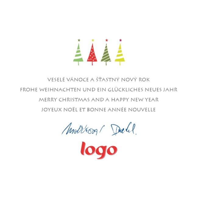 Vánoční přání s barevnými stromečky