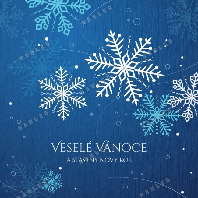 Modré vánoční přání se sněhovými vločkami