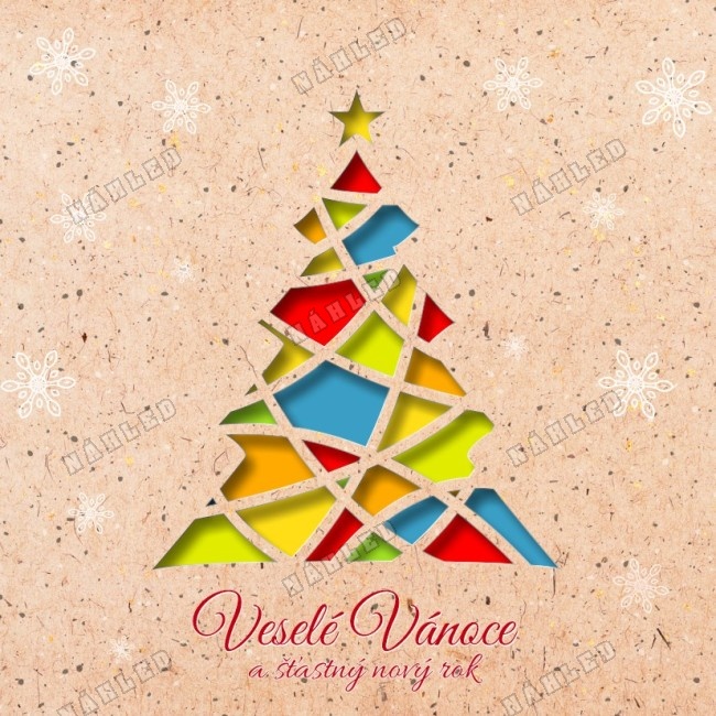 Novoročenka s barevným mosaikovým vánočním stromkem a zlatou hvězdou