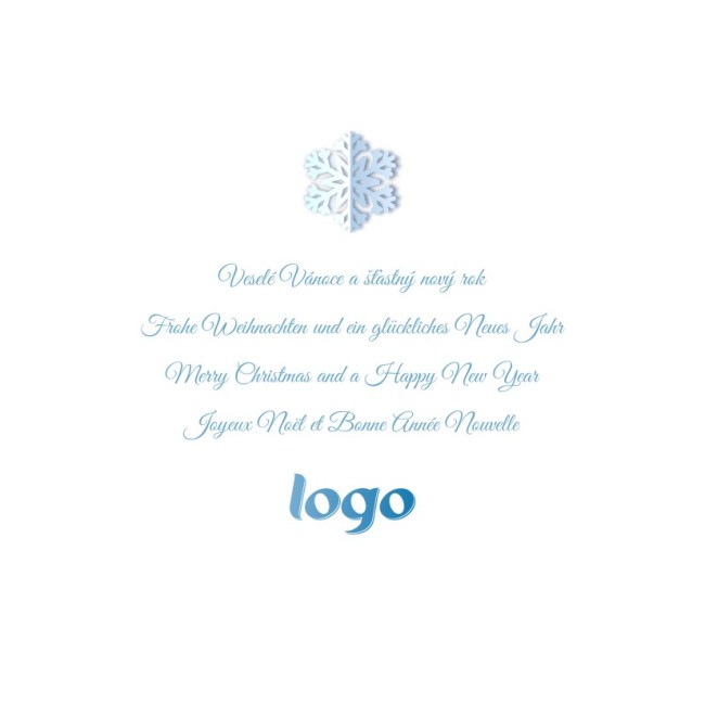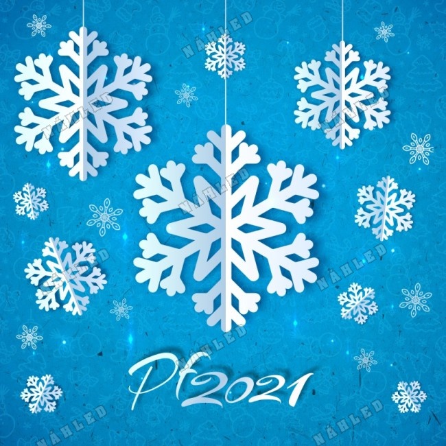 Modré vánoční přání se sněhovými vločkami a vánočními motivy na tapetě