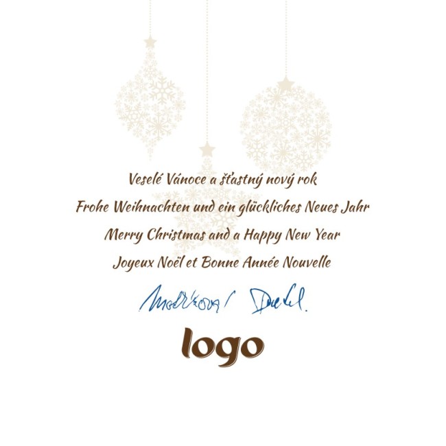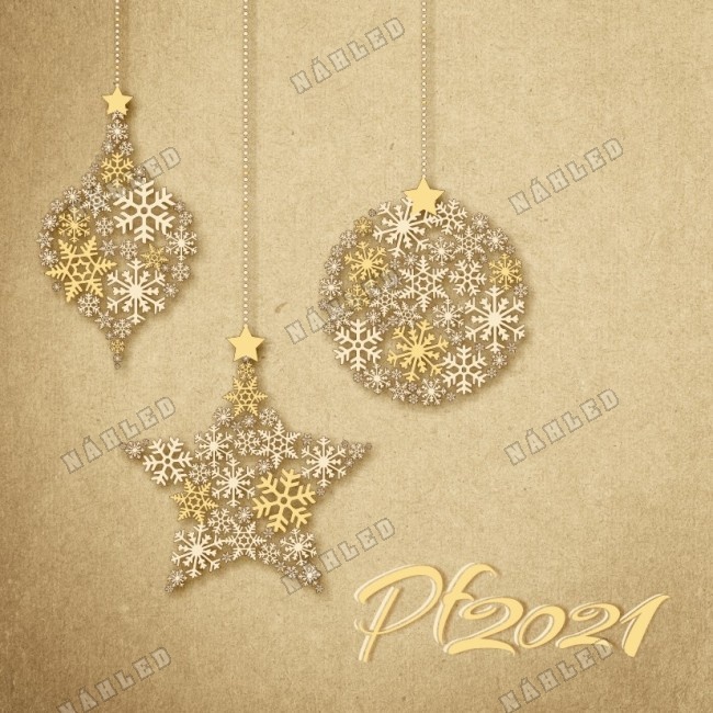 Zlatá novoročenka se zavěšenými vánočními ozdobami ze sněhových vloček