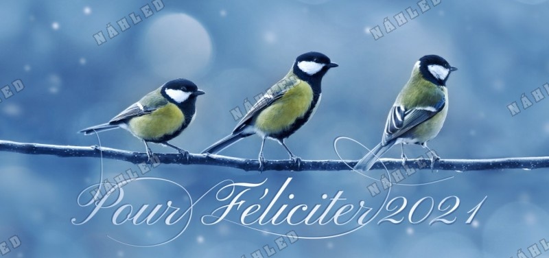 Vánoční přání se třemi sýkorkami na větvi