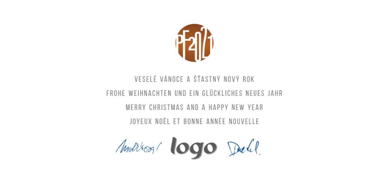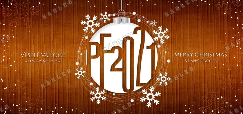 Vánoční přání s bílou vánoční koulí a Pf 2018