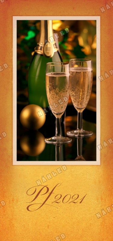 Novoročenka se dvěmi sklenicemi sektu a lahví šampaňského