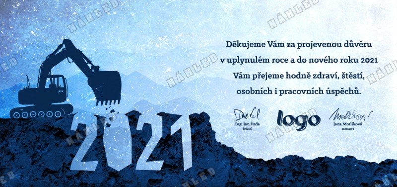 Novoročenka s motivem bagru a stavebních prácí v novém roce