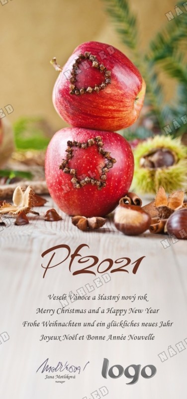 Vánoční přání s nazdobenými jablíčky hřebíčkem