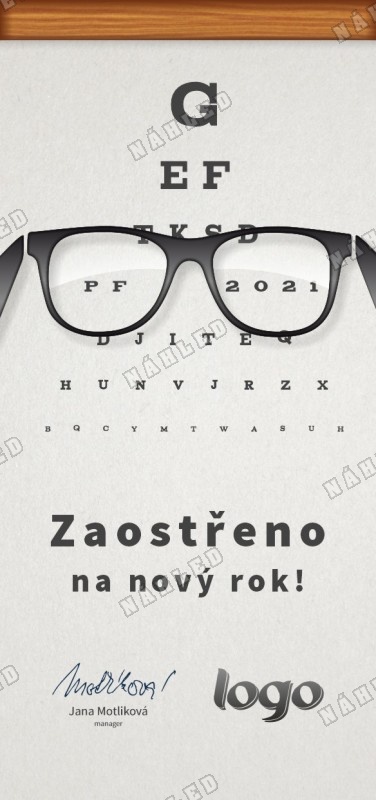 Novoročenka se čtecí tabulí a brýlemi