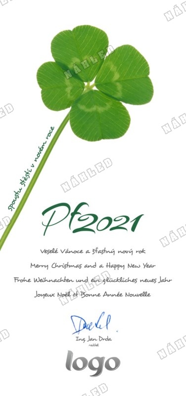 Bílé novoroční přání s čtyřlístkem pro štěstí v novém roce