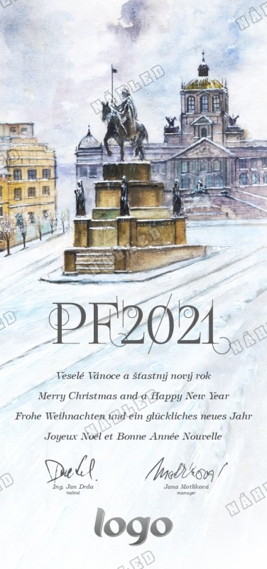 Novoročenka se svatým Václavem v Praze s pohledem na Národní muzeum