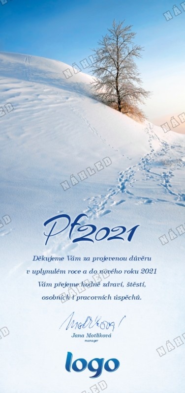 Zasněžená novoročenka v horách se stopami ve sněhu