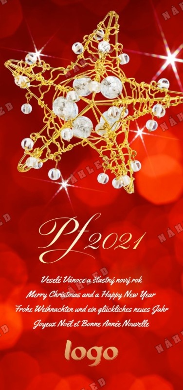 Červené vánoční přání se zlatou vánoční hvězdou