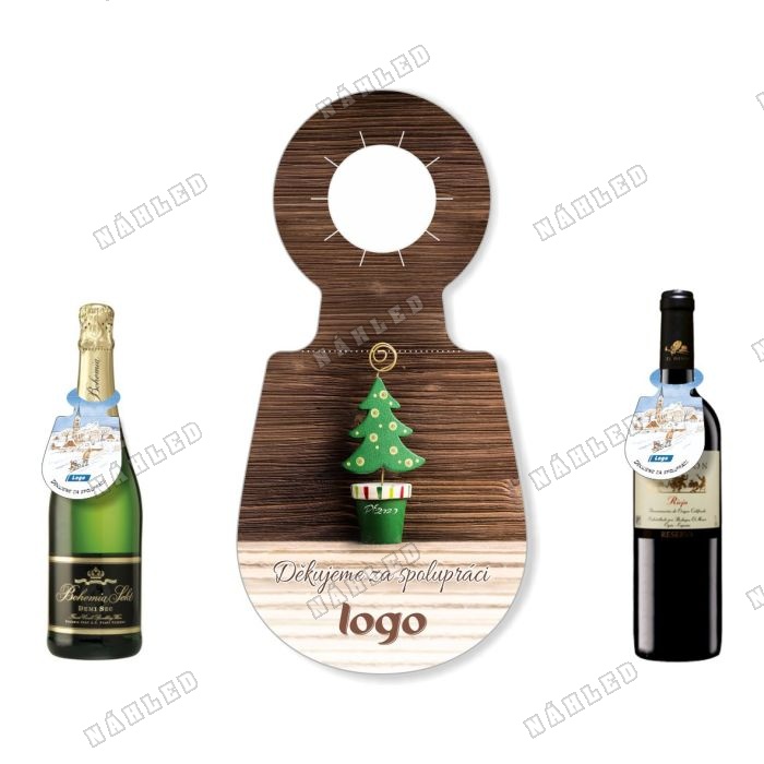 Visačka na lahev s dekoračním vánočním stromkem