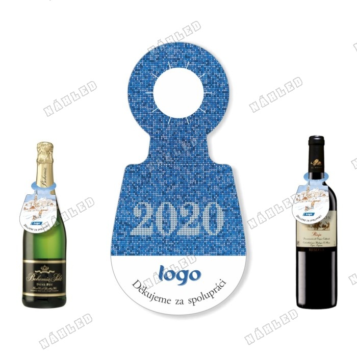 Visačka na lahev s pleteným motivem nového roku