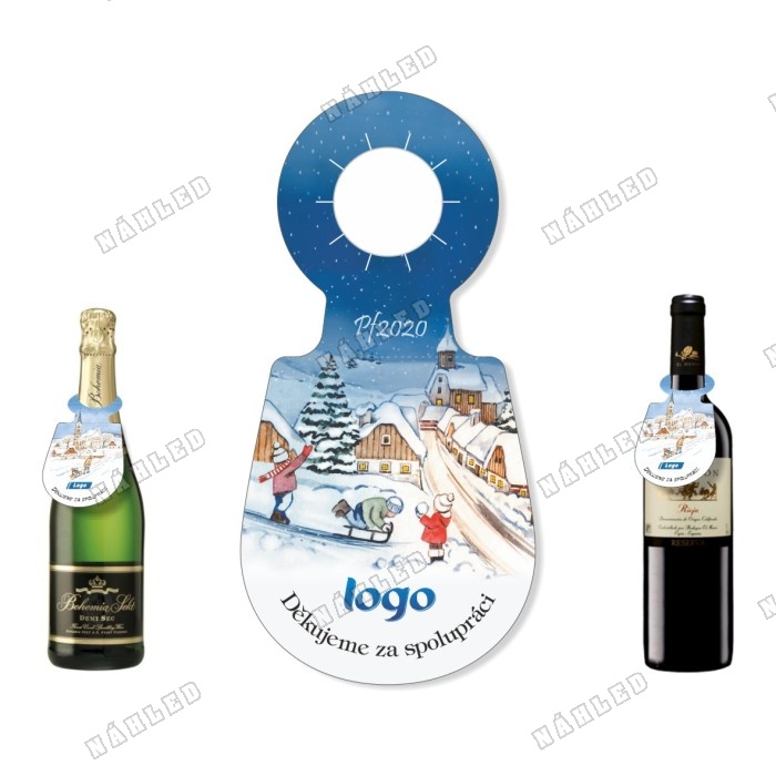 Visačka na lahev se sáňkujícími dětmi na vsi